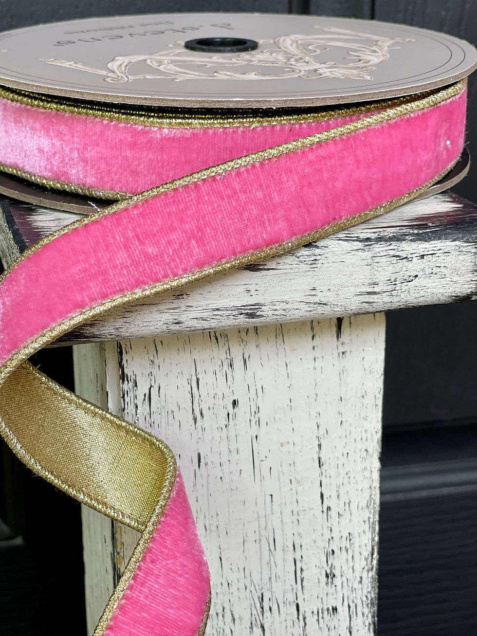 Pink lemonade 1 inch d Stevens velvet ribbon, holiday ribbon - 10 yards, wired